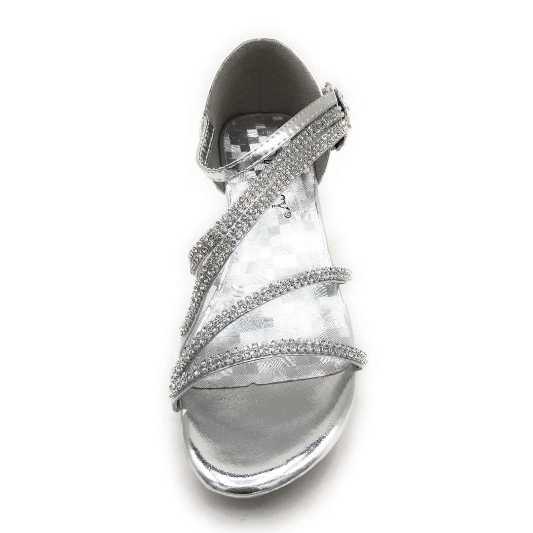 Womens Strappy Rhinestone Dress Sandal Low Heel Shoes