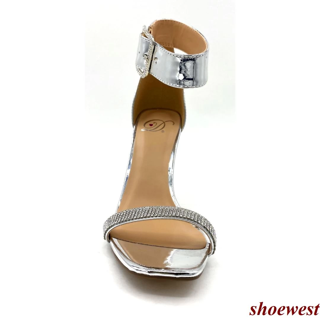 Delicious Shoes Block Heel Sandal Rhinestone Square wide Buckle Ankle Strap