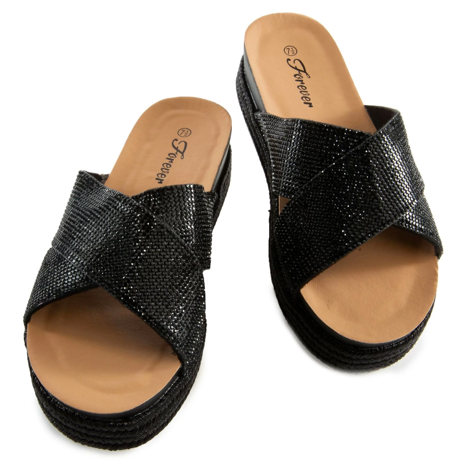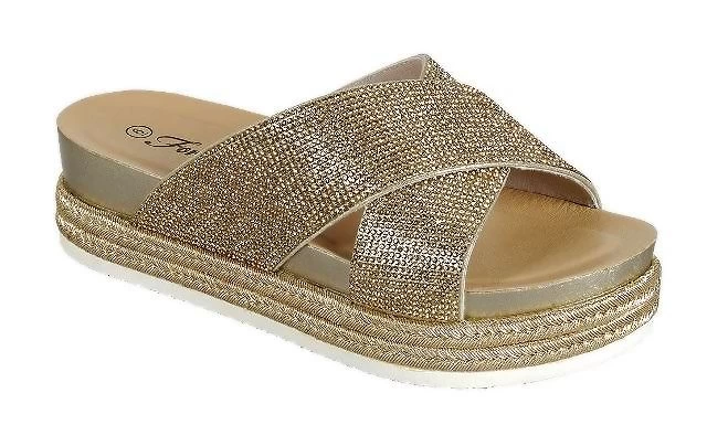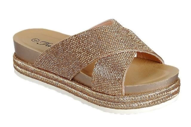 - Flat Wedge X-Cross Slide Rhinestones And Rope Detail