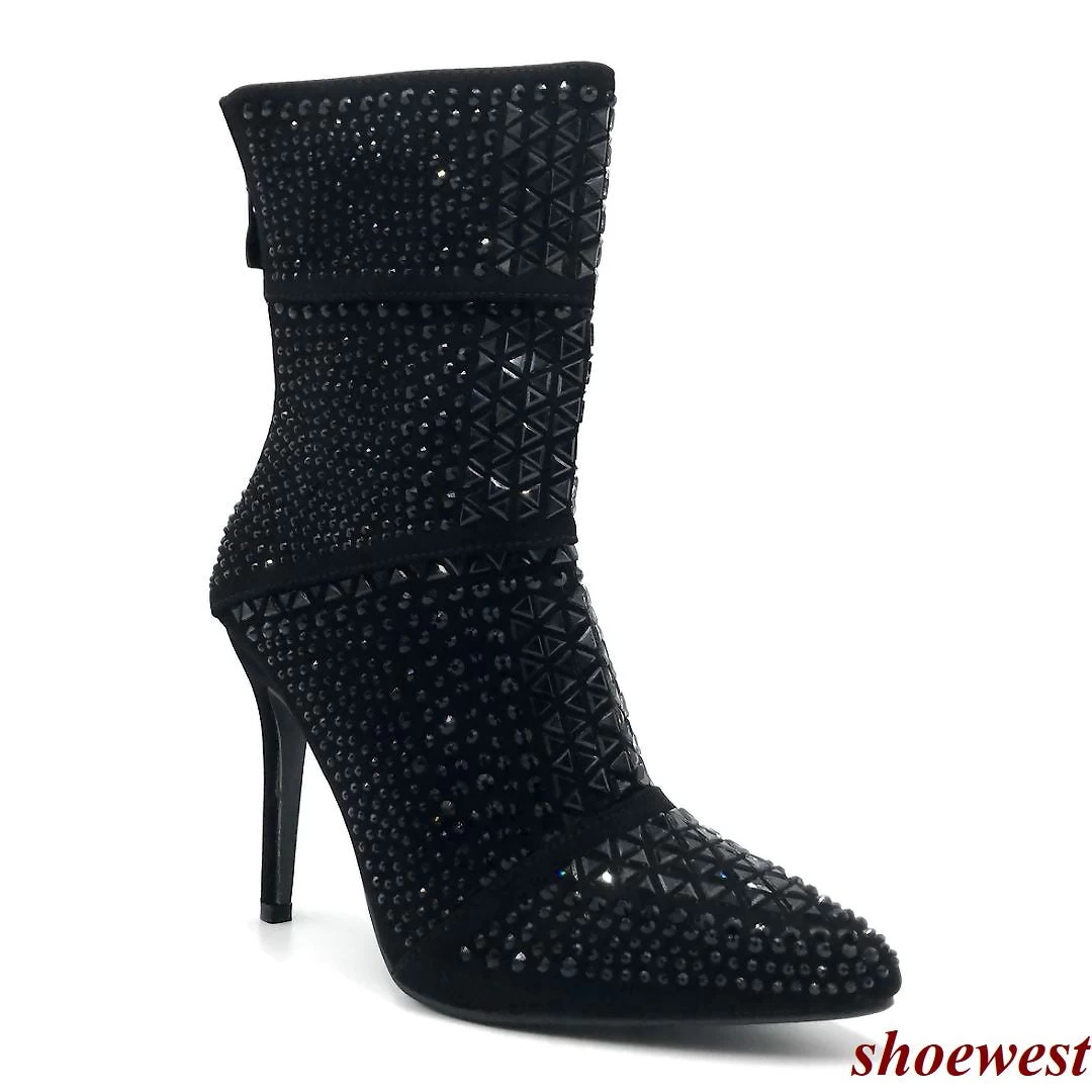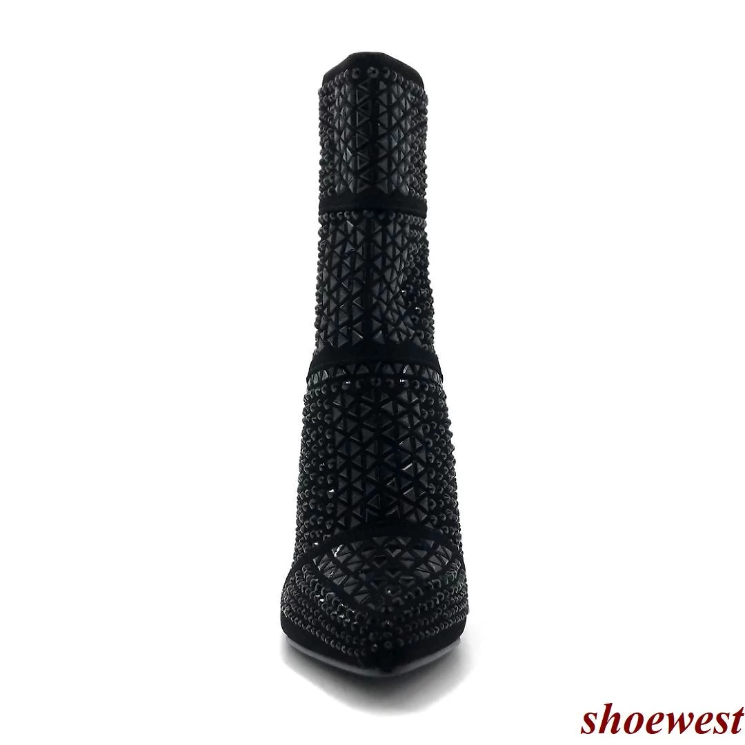 Forever Link Rhinestone Studded Stiletto Bootie- Women Crystal Ankle Height Boot