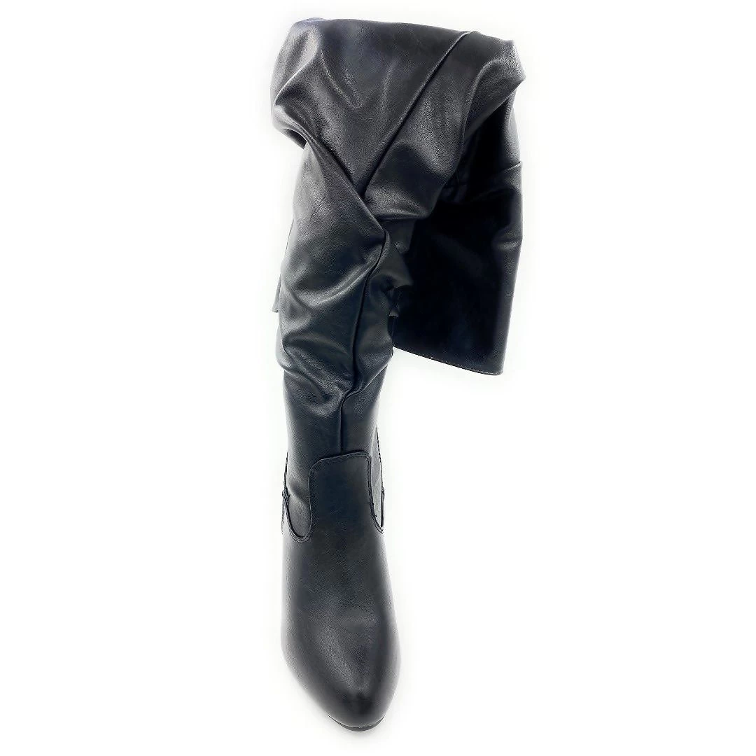 Forever Link Flip-top Slouch Over the Knee High Heel Dress Boots For Women