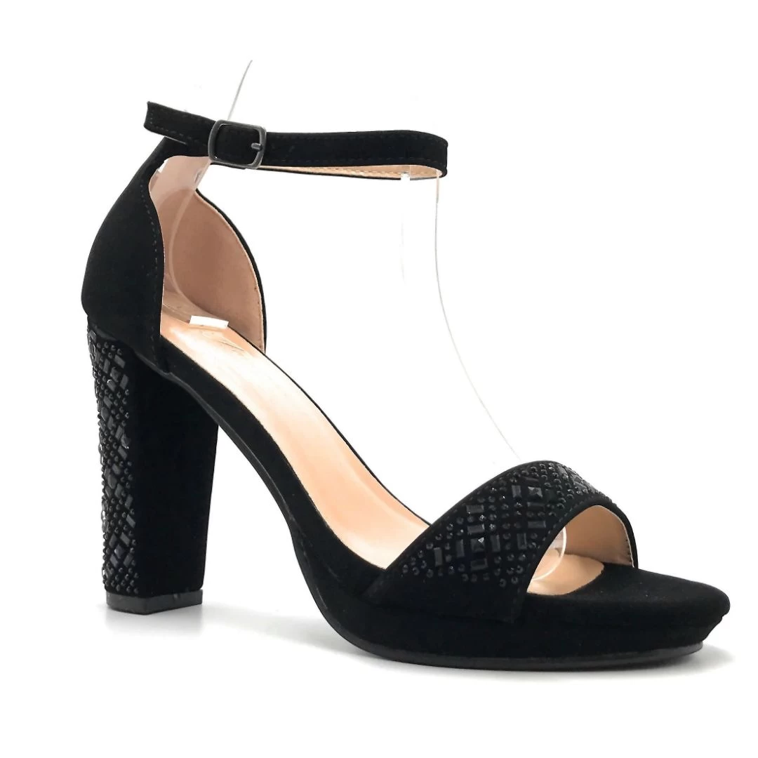 - Tiny Detail Cut Embellished Gems on Top Strap And Heel, Shiny Glitter Strap With Adjustable Buckle.