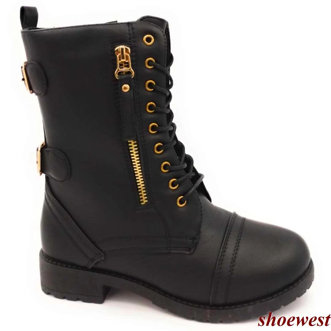- These boot lace all the way up the front but also have a full length inner side zipper that lets you slip them on and off with ease. Two decorative buckle on the back put the finishing touches on these cool boots!