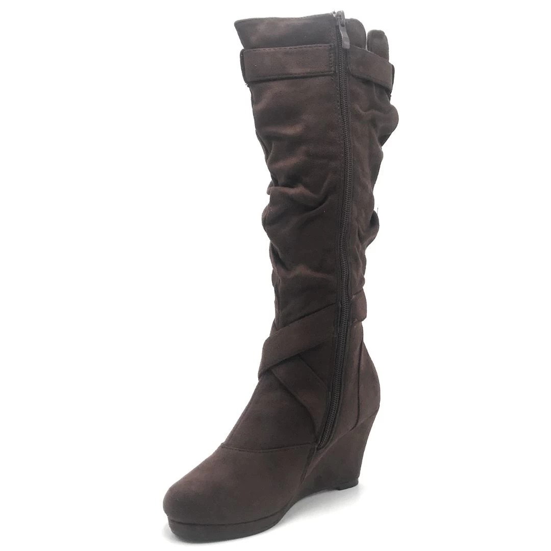 Forever Women’s Fashion Round Toe Wedge Heel Slouchy Zipper Mid Calf Boots Shoes