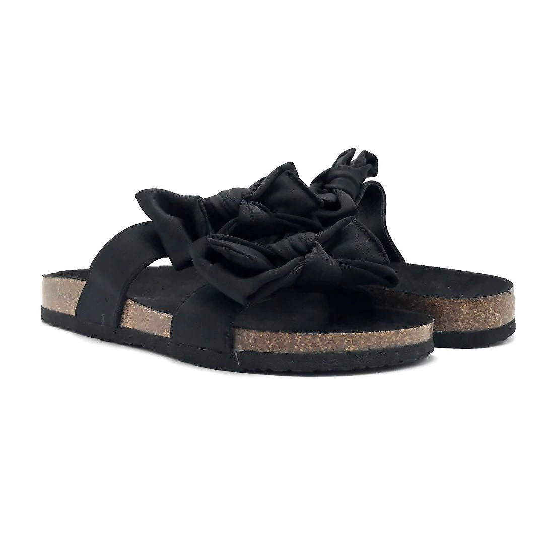 Liliana Tie and Die double strapped bowed slip ons For Summer and Beach Parties