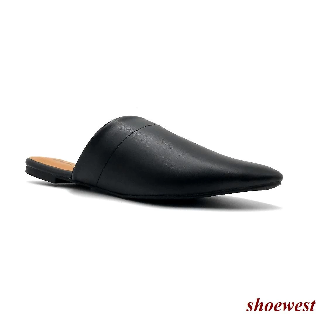 - The leather wraps over itself to create a modern, asymmetrical body that compliments any outfit. The final touch on these mules is the pointed toe, which gives them just little sass! For a busy day at the office, pair these mules with ankle length fitted black pants, a loose chiffon blouse and a simple pendant necklace!